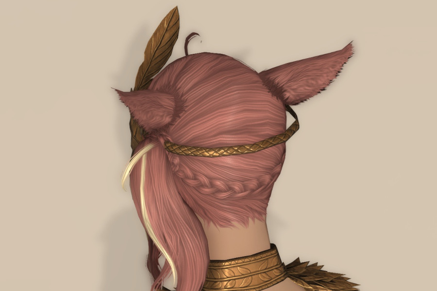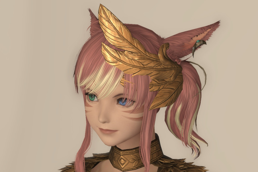 頭装備は、大きな羽根の飾りが特徴的です。