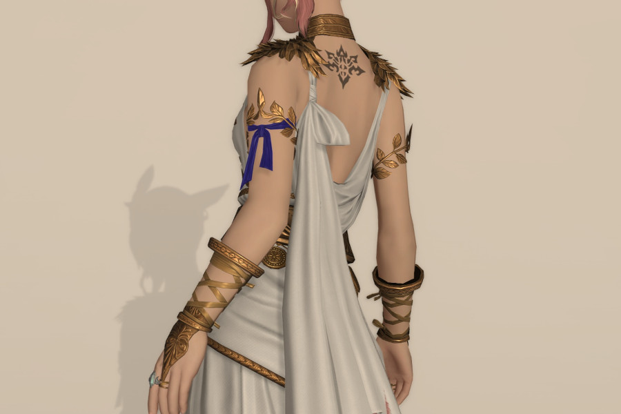 青い腕のリボンがアクセントです。腕に巻き付いた月桂樹っぽい葉っぱもオシャレ。