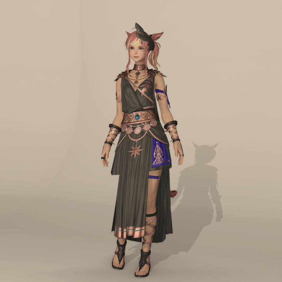 ギリシア神話を思わせるような金属の装飾、胸元や背中・脇などが大胆に開いたデザインが魅力的ですよ。