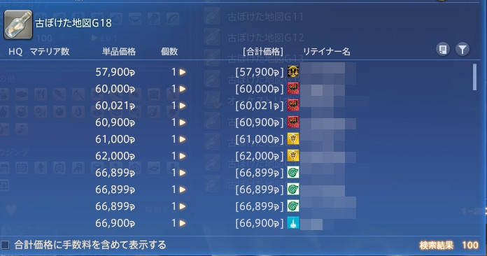 ある日、宝の地図G18を売ろうと思いまして、マーケットを見たらなんか高騰してる!