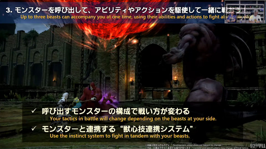 魔獣使いを実機でじっくりとご紹介。モンスターをとらえたり、街の中で呼び出したりしていますよ。