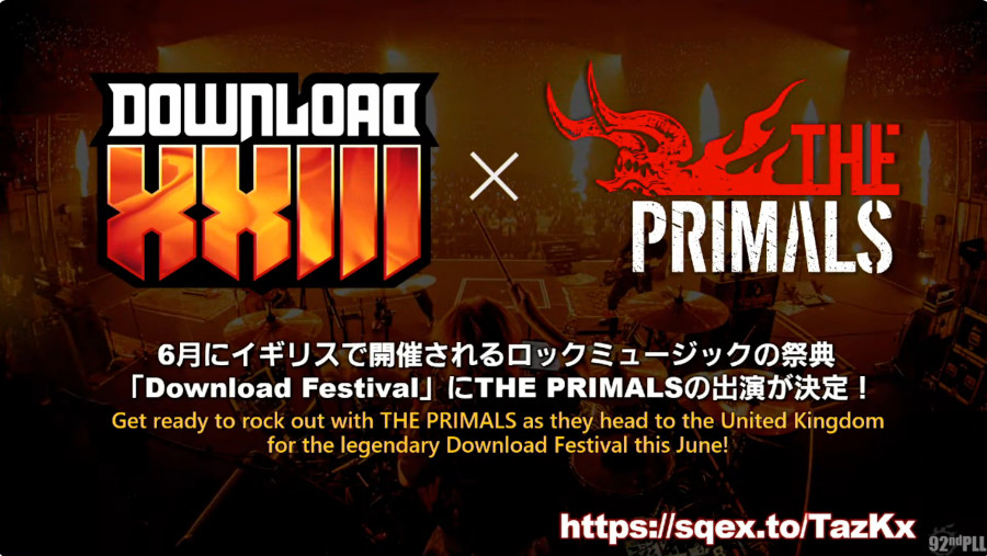 イギリス、ドニントンパークで開催されるダウンロードフェスティバルに、THE PRIMALSが出演します。