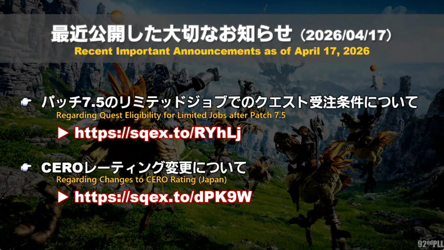 第92回PLLは、パッチ7.5実装コンテンツ特集Part2です。